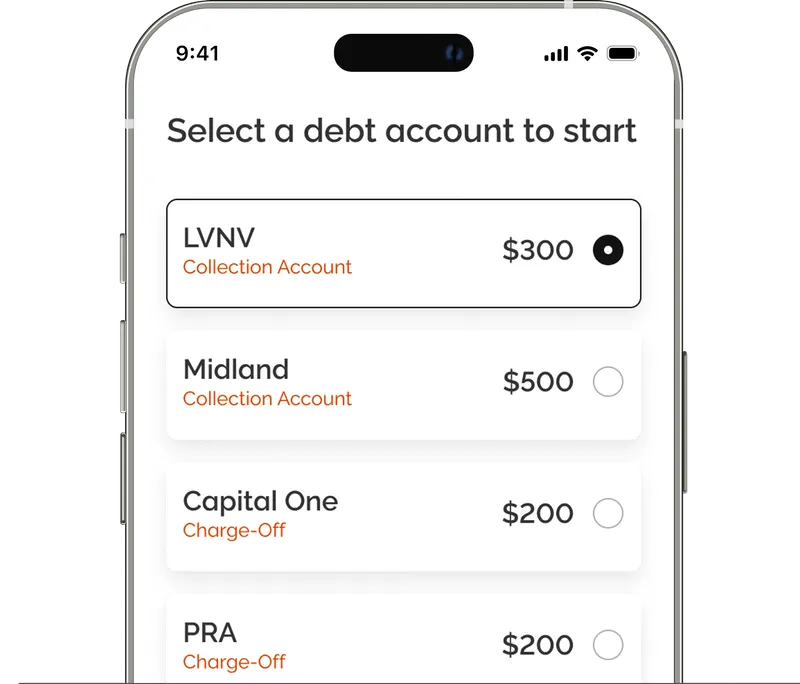 Seleccione una deuda elegible para comenzar. Podrás solicitar ofertas por deudas adicionales en el futuro.